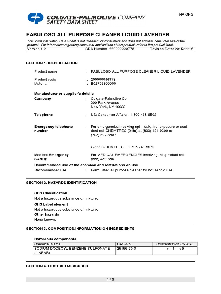 Msds Fabuloso Toxicity Dangerous Goods